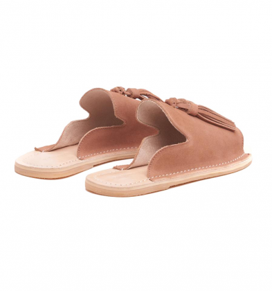 The Bukide Is Made Of Hand-Dyed Tan Knitted Cotton/Jute Fabric. All Soft Leather Lining. Leather Ankle Strap Fastened By A Coconut Wood Button. Sole Heel 100% Leather, Heel Stacked With A Rubber Cap.