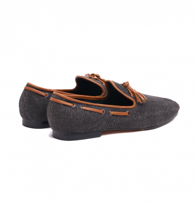 Komoran Is Made With A Hand-Dyed Charcoal Jute Fabric And Black Leather, Edged By A Sewn Jute Band And Leather In Front. Lined With Soft Suede Fabric. Cotton Laces On The Side. Sole In Rubber. Great With Linen Or Cotton Shorts.